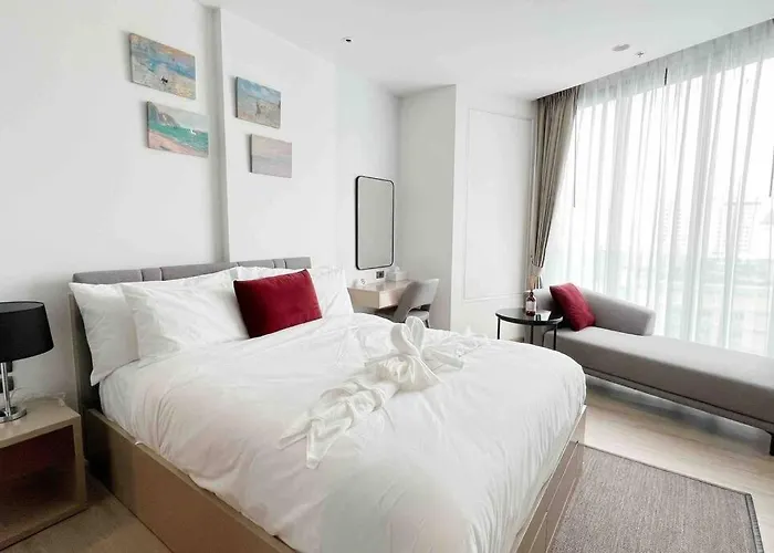 设有私人游泳池的Edge Central Pattaya Bj在皇家花园广场附近。 度假屋设有1间卧室和1间浴室。